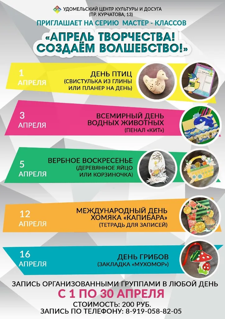 Друзья, продолжается запись на серию тематических мастер-классов "Апрель творчества! Создаём волшебство!"