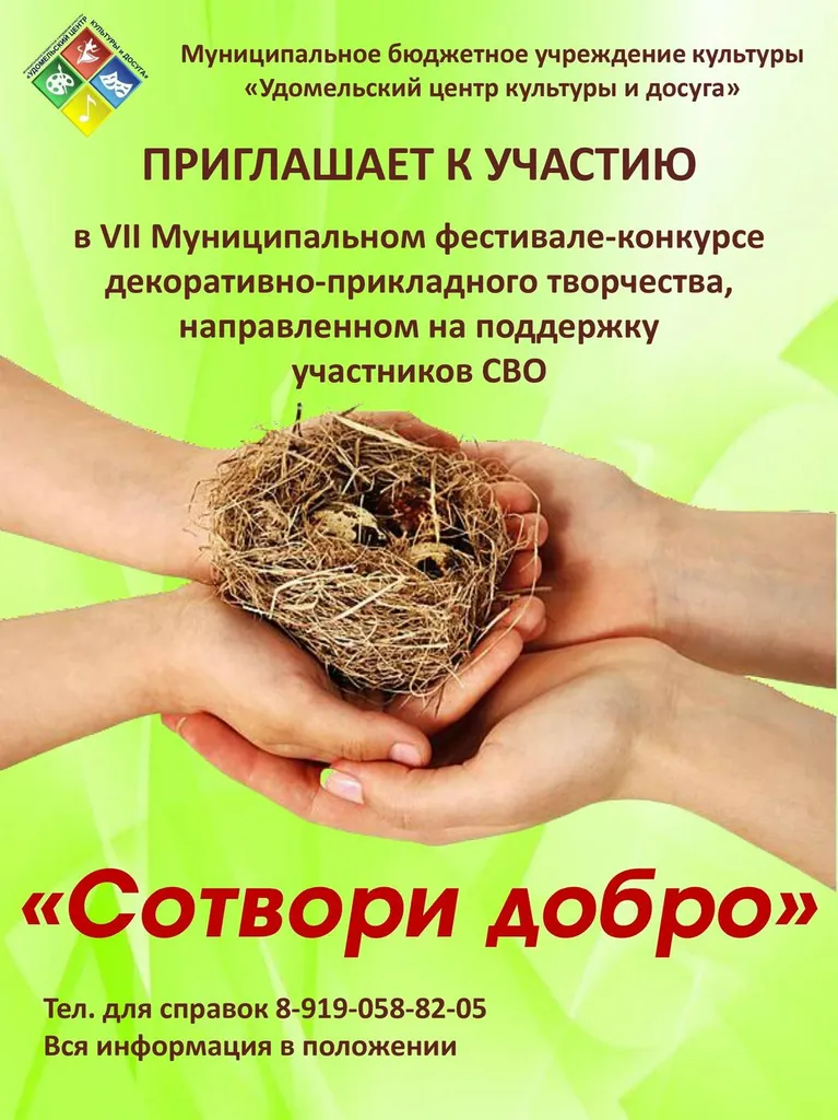 Друзья, приглашаем принять участие в VII Муниципальном фестивале-конкурсе декоративно-прикладного творчества, направленном на поддержку СВО "Сотвори добро"!